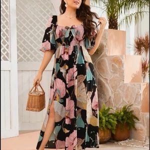 Plus Floral Tropical Print Butterfly Sleeve Maxi Dress