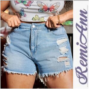 Plus High Waist Ripped Raw Hem Denim Shorts