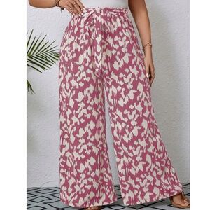 Plus Leopard Print Stretchy Waist Wide leg Pants