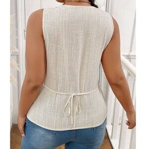 Plus Linen Button Down Sleeveless Minimalist Tank Top