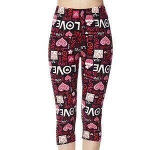 Plus Love print leggings♥️Bring your wardrobe to the next level with this super soft and cute brushed capri legging, featured in a LOVE print. Because of its smooth and comfortable fit, you can wear these anywhere and anytime. Dress it up with a dressy top and a pair of heels for a classy going out look, or dress it down with an oversized top and a pair of sneakers for a casual day ensemble.
