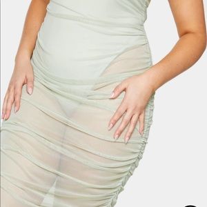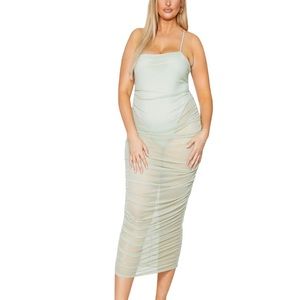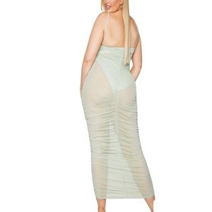 Sexy Plus Sage Green Mesh Ruched Strappy Midaxi Dress