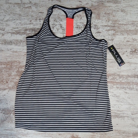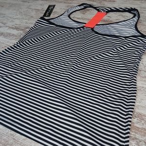 Very nice black and white striped tank with orange stretchy racerback piece! NWT!