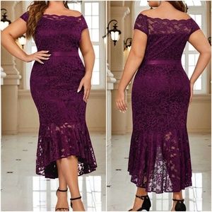 Plus Off Shoulder Lace Evening Formal Wedding Dress