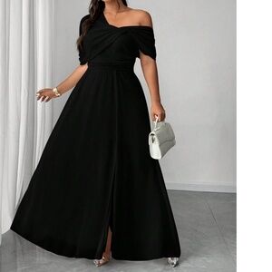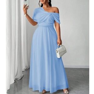 Plus One Shoulder Split thigh Party Evening Gown Dress