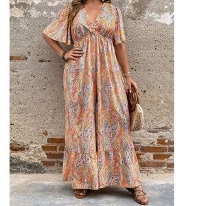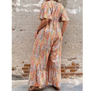 Plus Paisley Print Butterfly Sleeve Wide leg Jumper Jumpsuit