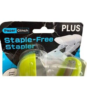 Plus Paper Clinch Staple Free Stapler Green 5 Sheet Capacity Tabs Interlock New!