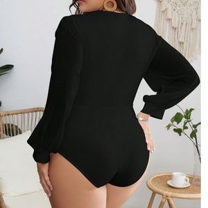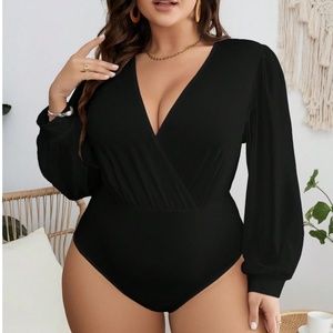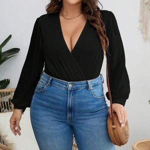 Plus Plunging Neck Surplice Long Sleeve Bodysuit