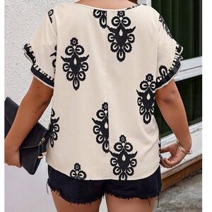 Plus Print Petal Ruffle Short Sleeve Blouse