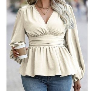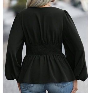 Plus Ruffle Hem Solid Long sleeve Blouse