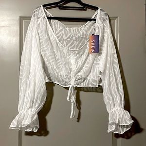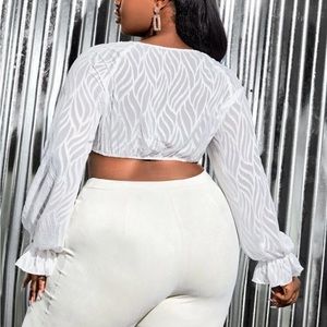Plus Ruffle Sleeve Crop Top