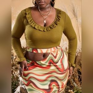 Plus Ruffle Trim Crop Top