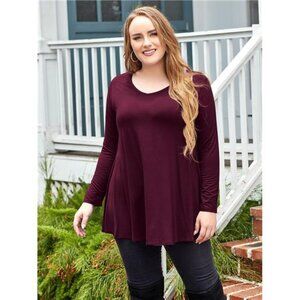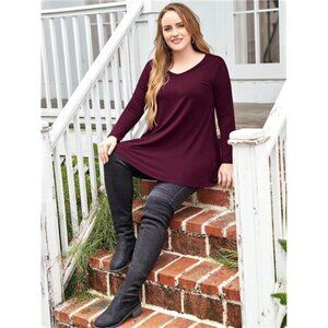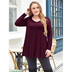 Plus S ze Long Sleeve Tunic Top - V Neck Loose Fit Blouse for Women