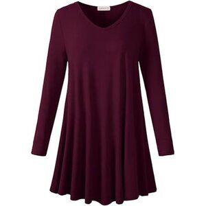 This flowy tunic top features a flattering V-neck and relaxed fit that's perfect for pairing with leggings. Made from soft, stretchy rayon and spandex fabric, this versatile top offers comfortable style for casual wear or work. Designed to provide comfortable coverage and a slimming silhouette.