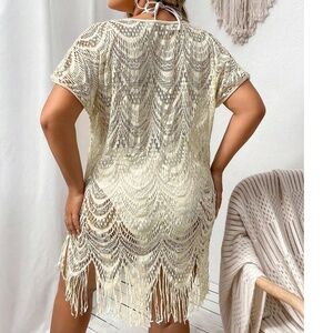 Plus Semi Sheer Short Sleeve Beach Cover up Dress
