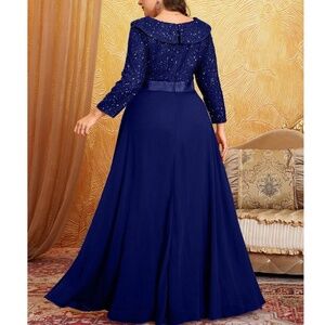 Plus Sequin V neck Party Evening Formal Wedding Flowy Dress