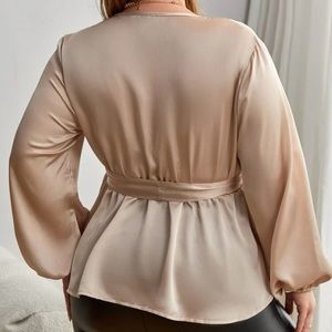 Silk/satin along sleeve blouse VNeck Belt can be removed Size: 3X / 18 Cream pink color *I ship next day!