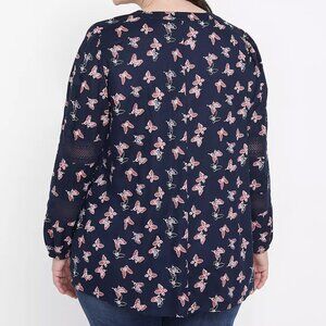 Plus Size 14/16 Lane Bryant Butterfly V-Neck Long Sleeve Button Front Lace Top