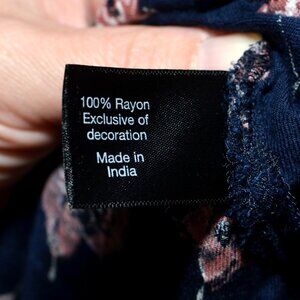 Super cute whimsical butterfly pattern on deep navy blue. This unique long-sleeve top features lace-inset peek-a-boo bands on the forearms. Loose, breezy sleeves gather at the wrists. Lightweight, sturdy fabric - perfect for office or casual.
