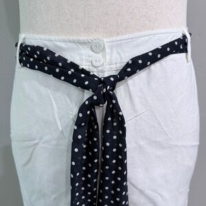 Piece 2: White Linen-Blend Wide-Leg Pants with Polka-Dot Sash (W18)