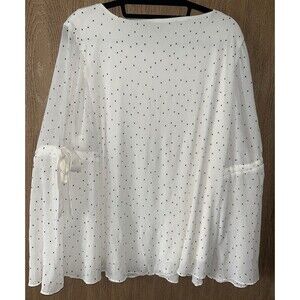 Plus Size 22/24 Long Bell Sleeve White Polka Dot Chiffon Top/blouse Lane Bryant