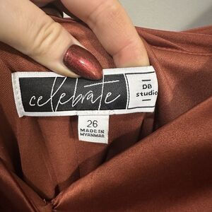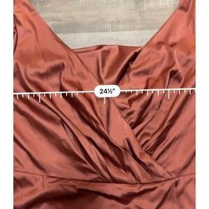 Plus Size 26 Rust Satin Wrap Maxi Dress Flutter Sleeve Slit Formal Evening Gown