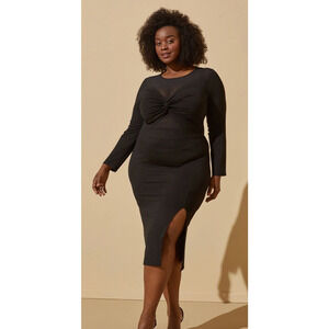 • Stretch-knit midi bodycon dress with mesh panel, knotted detail and split at front.