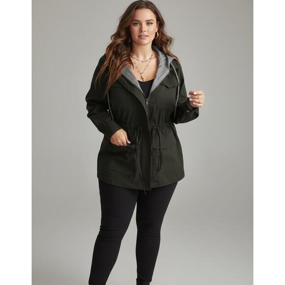 Plus Size 2X 18 20 BloomChic Hooded Jacket 4 Pockets Zipper Coat Cotton NWT