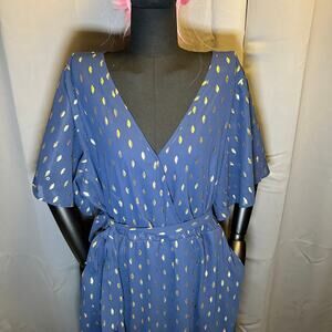 Plus Size 2X 18 20 Blue BloomChic Dress Gold Foil Dot Pockets slimming and comfy