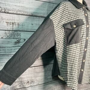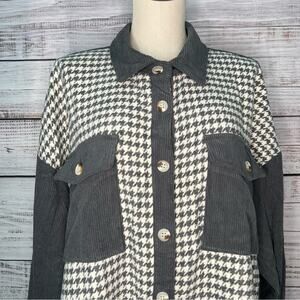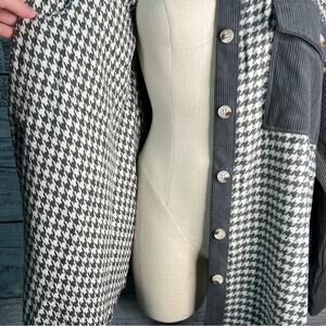 Plus Size 2X Corduroy Houndstooth Colorblock Shacket Jacket Gray and White