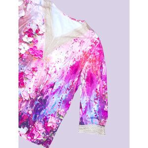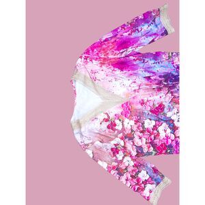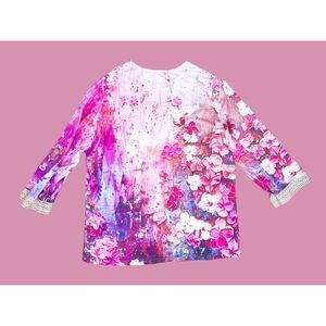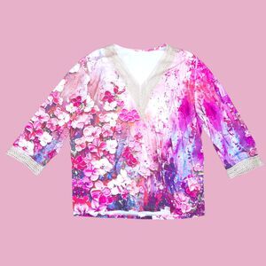Plus Size 2X Floral Top with Lace Neckline and Cuff Details