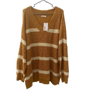 Plus Size 2X Sonoma Goods For Life Long Sleeve V-Neck Gold Striped Sweater