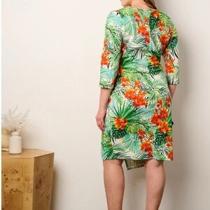 Plus Size 3/4 Sleeve Tropical Print Dress
