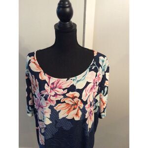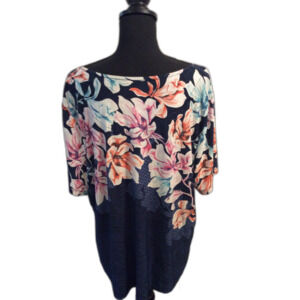 Plus Size 3X Blue Floral Short sleeve Shirt Embellished