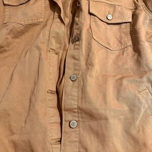 Chic light brown jacket with button-up front. Ideal for everyday style. This is from Torrid in a size 3 and is new with tags, never worn. It’s a relax fit and has pockets in the front. The buttons go up to the neckline and sleeves can be rolled.