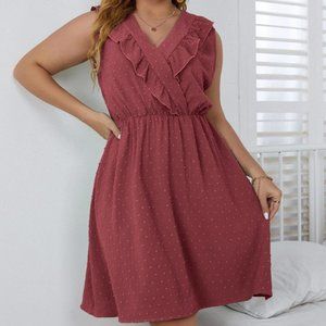 Plus Size 4X Brick Red Dobby Surplice Ruffle Midi Dress
