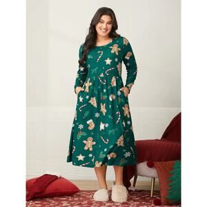 Plus Size 5X 28 BloomChic Gingerbread Candy Cane Midi Dress Christmas Holiday