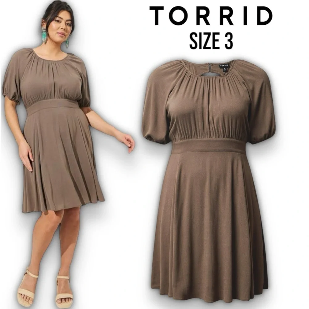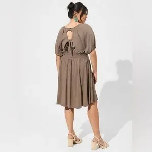 Mini Rayon Slub Puff Sleeve Skater Dress