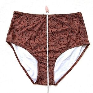Plus Size Animal Print Brown & Black Full Coverage Swim Bottom.