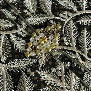 Just missing a couple gems on the jacket clasp. Not noticeable when worn.