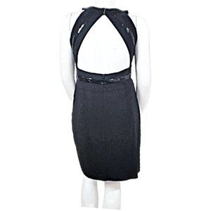Morgan & Co. black cocktail dress features bare shoulders and partial bare back.Design includes a molded self-bra and srraight skirt with invisible back zipper. This dress is fully lined. 100% Polyester. Hand wash. Imported.