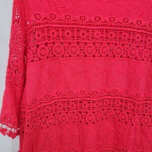 Plus Size Blouse Embroidered Crochet Crewneck Sheer 3/4 Sleeve 2XL Womens Red