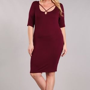 Plus Size Bodycon Burgundy Dress Scoop Neck New