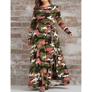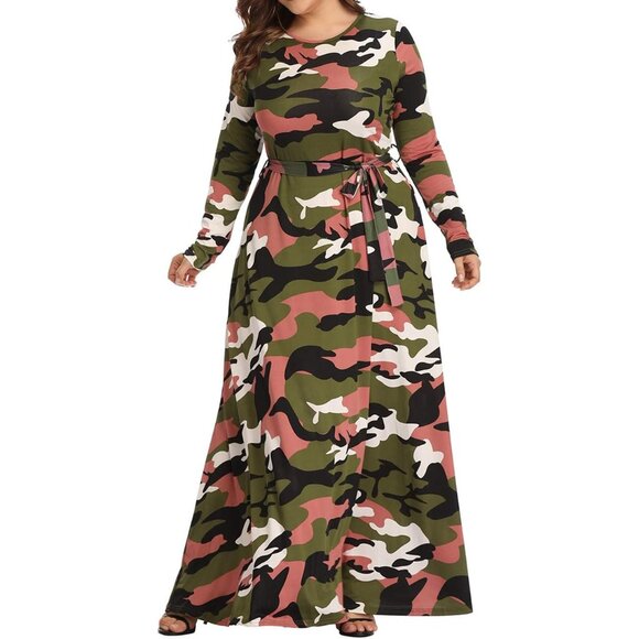 Plus Size Camouflage Maxi Dress Long Sleeve Floor Length Party Casual