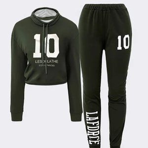 Trendy design: Featuring a number and letter print, long sleeves, drawstring mock neck top, and matching pants, this two-piece set is a must-have for any fashion-forward woman.