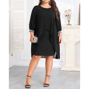 Plus Size Cocktail Dress Chiffon Cape Glitter Evening Party Wedding Guest