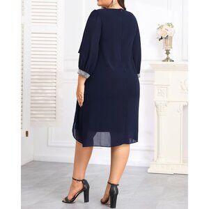 Plus Size Cocktail Dress Chiffon Cape Glitter Evening Wedding Guest