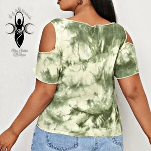 Plus Size ✦ Cold Shoulder Tie-Dye Tee ✦ Green/Cream Ribbed Lettuce Trim 4X NWT