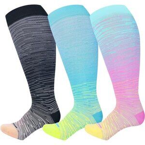 *Compression Socks for Women Plus Size: High-quality plus size compression socks are offer a compression grade of 15-20 mmHg. These socks effectively alleviate a range of blood circulation issues, including swelling and help in muscle recovery.