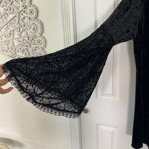 ༓ long wide spiderweb bat sleeves, zipper front with cross charm